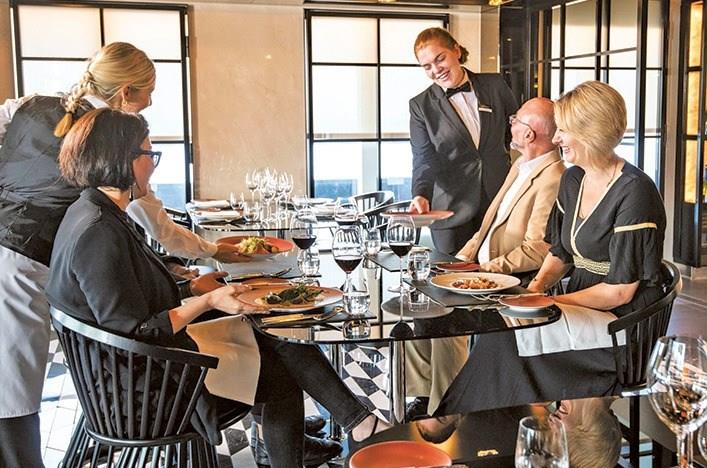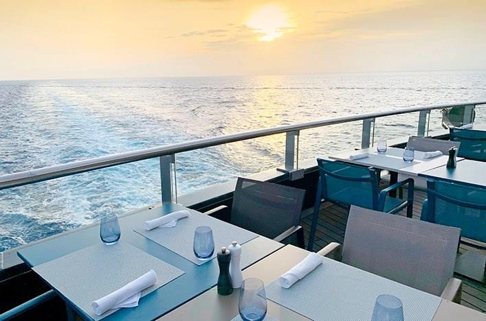Elements is the main restaurant featuring Italian, steak, and seafood from an à la carte menu. Located on Deck 4, it’s a relaxed dining option for dinner. Dine solo or with your travel partner, or join friends on larger tables. Enjoy premium beverages from Elements Bar, which hosts fine wines matched to the daily menu and a broad selection of international cheeses.